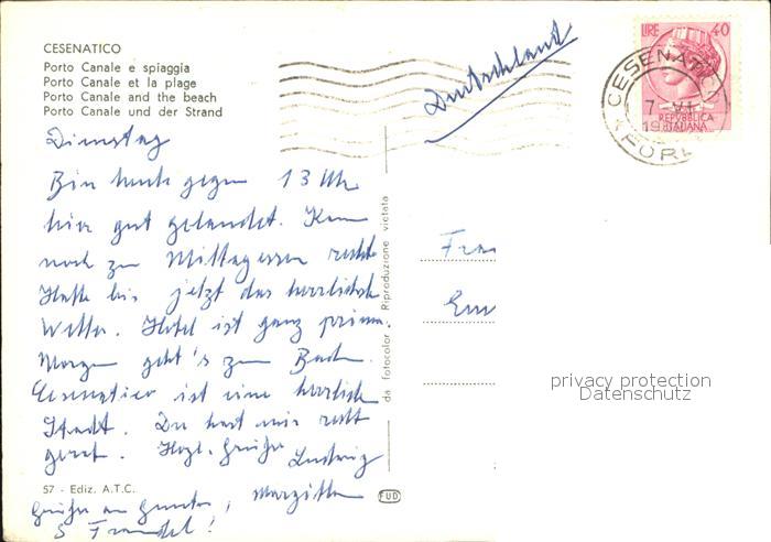 old postcard Cesenatico Porto Canale Spiaggia Hafen Strand Segeln postalisch gelaufen Erhaltung siehe scans