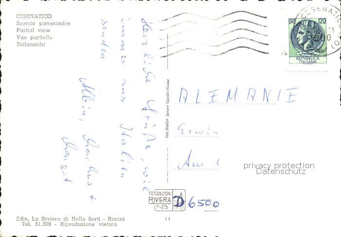 old postcard Cesenatico Segelboot Strand Hochhaus postalisch gelaufen Erhaltung siehe scans