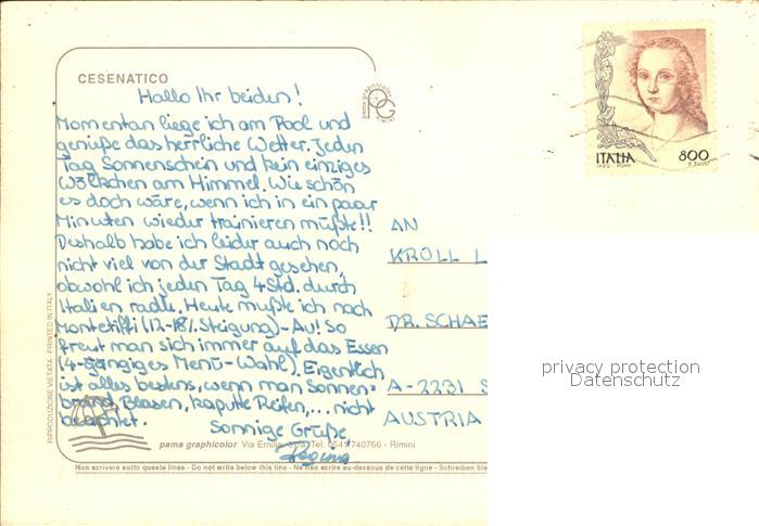 old postcard Cesenatico Strand Hafen Fliegeraufnahme postalisch gelaufen Erhaltung siehe scans