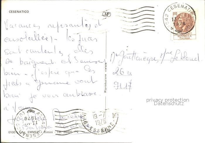 old postcard Cesenatico Strandpartie Abendstimmung Ortsblick bei Nacht postalisch gelaufen Erhaltung siehe scans