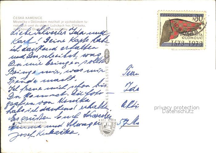 old postcard Ceska Kamenice Kirchen postalisch gelaufen Erhaltung siehe scans