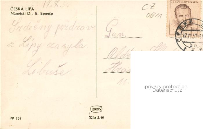 73848823 Ceska Lipa Boehmisch Leipa CZ Namesti Dr E Benese postalisch gelaufen Erhaltung siehe scans [WerneD78] old postcard Wern Katcode 11520