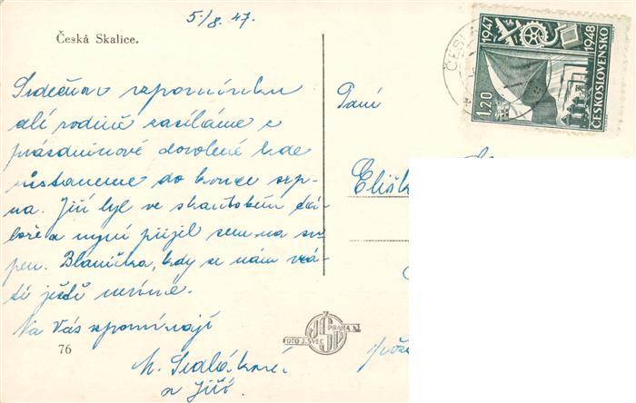 73959739 old postcard Ceska Skalice Boehmisch Skalitz CZ Platz Stadtzentrum postalisch gelaufen Erhaltung siehe scans [FriedD77] KatCode: 11520
