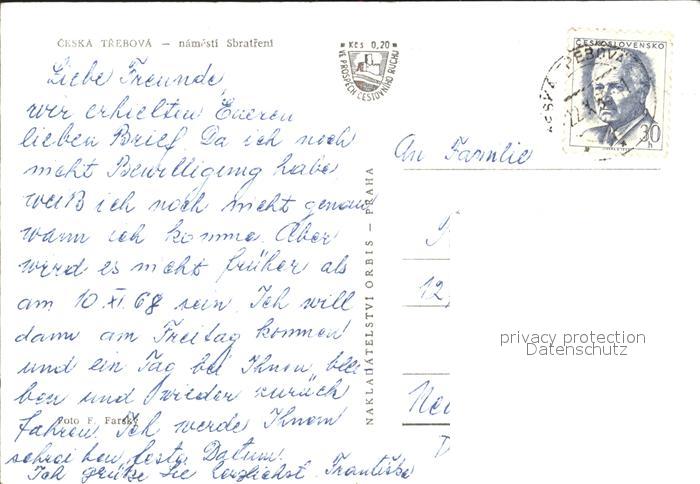 old postcard Ceska Trebova Denkmal postalisch gelaufen Erhaltung siehe scans