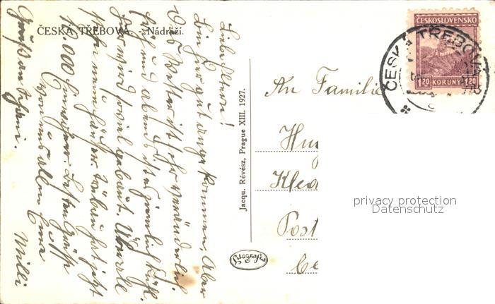 32204524 old postcard Ceska Trebova Nadrazi Bahnhof postalisch gelaufen Erhaltung siehe scans KatCode: 11520