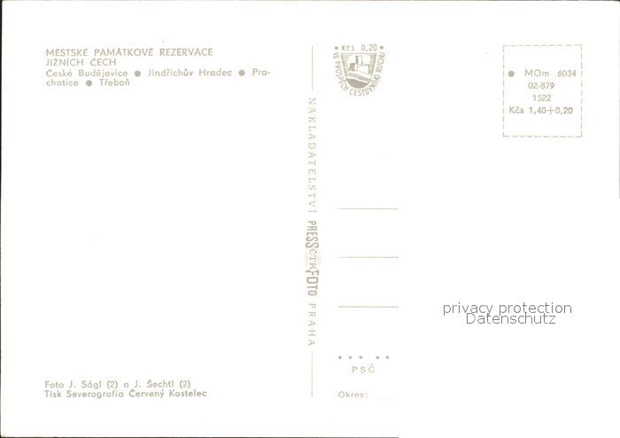 Ceske Budejovice Juznich Cech Jindrichuv Hradec Prachatice Trebon postalisch nicht gelaufen Erhaltung siehe scans