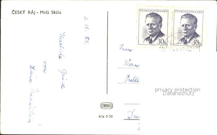 12365148 old postcard Cesky Raj Trosky Malà Skàla postalisch gelaufen Erhaltung siehe scans KatCode: 11520