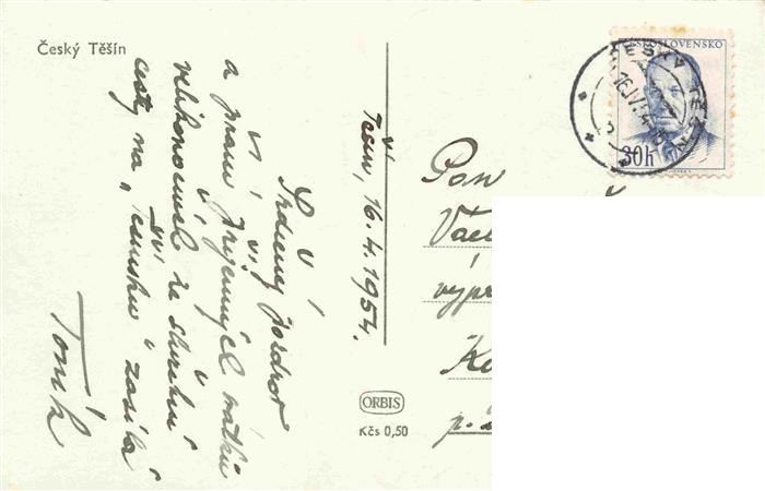73972441 old postcard Cesky Tesin Tschechisch-Teschen CZ Ortsmotiv postalisch gelaufen Erhaltung siehe scans [WerneD78] KatCode: 11520