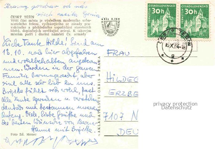 74023914 old postcard Cesky Tesin Tschechisch-Teschen CZ Teilansicht postalisch gelaufen Erhaltung siehe scans [WerneD78] KatCode: 11520