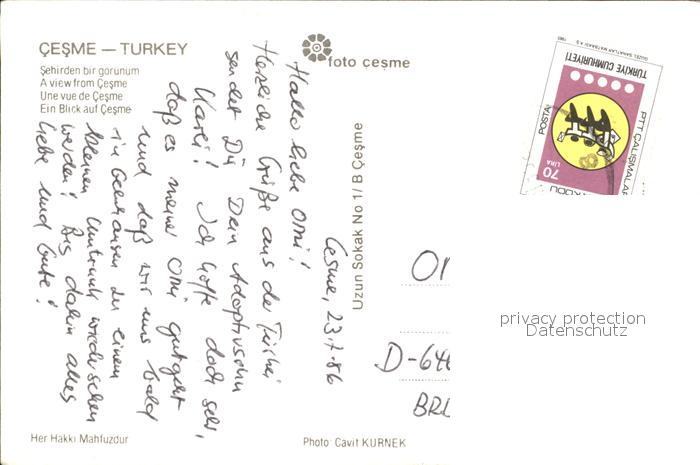 old postcard Cesme Sehirden bir goeruenuem postalisch gelaufen Erhaltung siehe scans