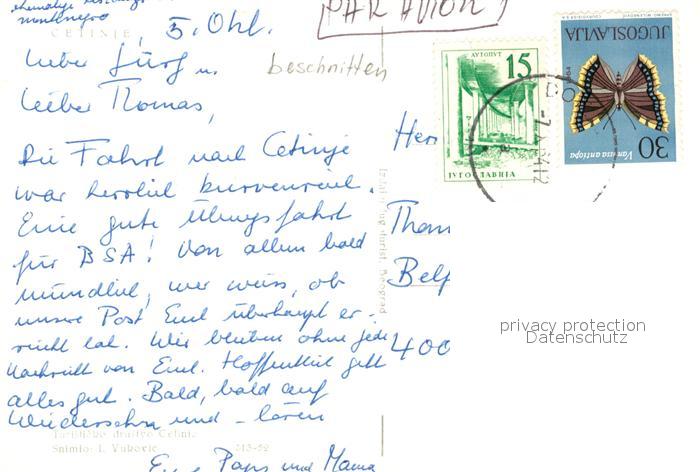 13329818 Cetinje Stadtansicht postalisch gelaufen Bahnpost Erhaltung siehe scans [KathaD81] Bahnpost old postcard Kath Katcode 11360