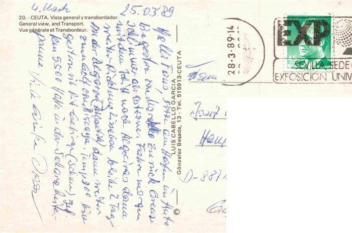 74142604 old postcard Ceuta ES Generale view and Transport postalisch gelaufen Erhaltung siehe scans [IrynaD87] KatCode: 11510