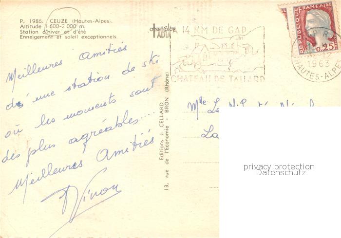 13767473 Ceuze 05 Hautes-Alpes Station d’hiver et d’ete Enneigement et soleil exceptionnels postalisch gelaufen Erhaltung siehe scans [WerneD78] carte postale Wern Katcode 11170005205061