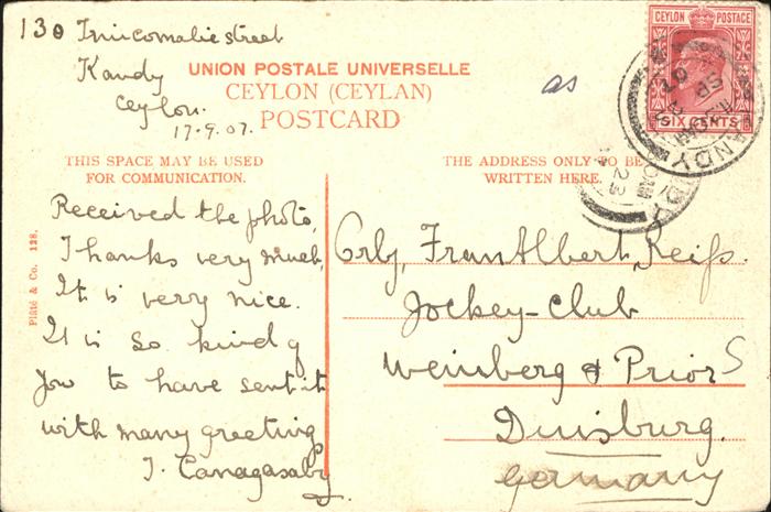 11103810 Ceylon Sri Lanka Kandy KatCode 12160