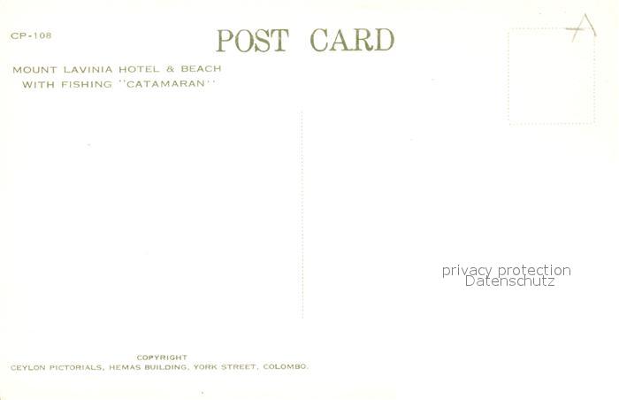 73072391 Ceylon Sri Lanka Mount Lavina Hotel and beach with Catamaran KatCode 12160