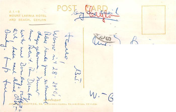 73947481 Ceylon Sri Lanka Mount Lavinia Hotel and Beach postalisch nicht gelaufen Erhaltung siehe scans [FriedD77] KatCode: 12160