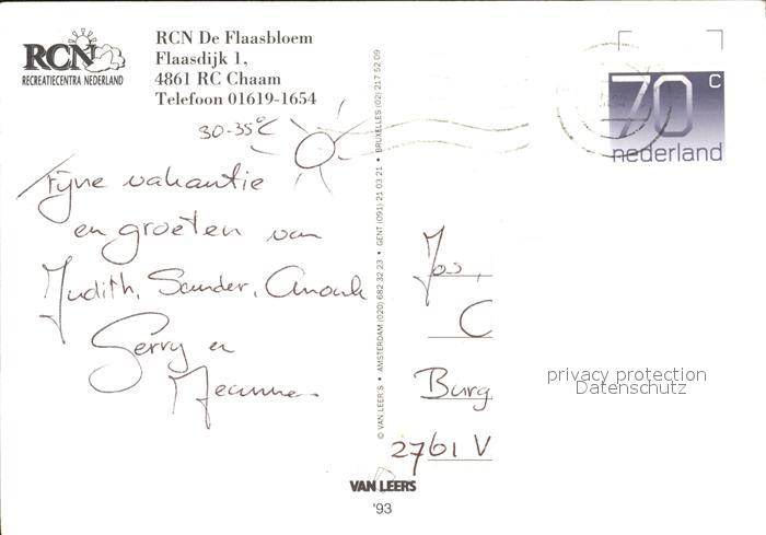old postcard Chaam RCN de flaasbloem Camping und Bungalows postalisch gelaufen Erhaltung siehe scans