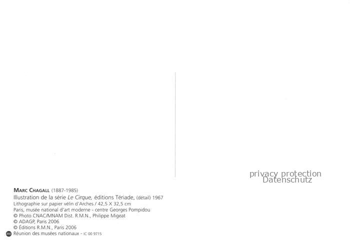 74063097 CHAGALL Marc (1887-1985) Kuenstlerkarte Illustration de la serie Le Cirque Teriade postalisch nicht gelaufen Erhaltung siehe scans [IrynaD87] KatCode: 22240000003200