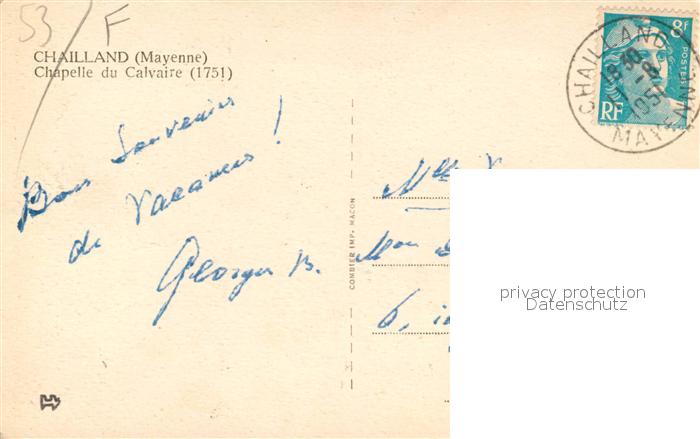 13479188 carte postale Chailland Chapelle du Calvaire postalisch gelaufen Erhaltung siehe scans [FriedD77] KatCode: 11170053253048