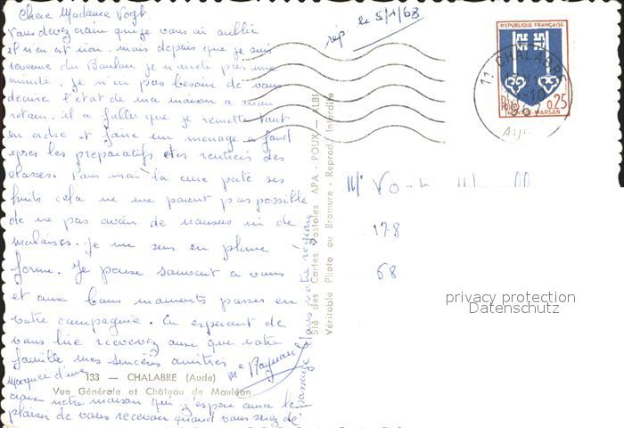 12314472 carte postale Chalabre Fliegeraufnahme postalisch gelaufen Erhaltung siehe scans KatCode: 11170011211091