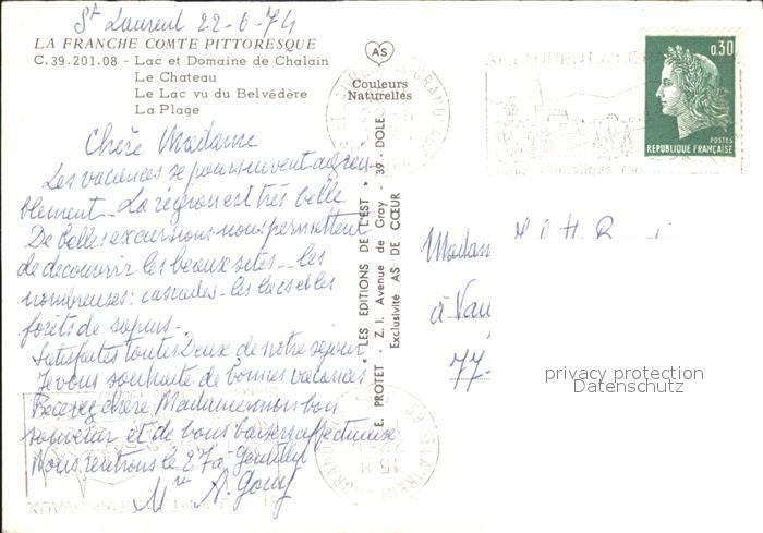 12235877 carte postale Chalain Franche Comte Chateau Lac vu du Belvedere Plage postalisch gelaufen Erhaltung siehe scans KatCode: 11170039239230