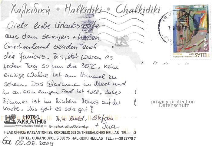 74005631 old postcard Chalkidiki Halkidiki Greece Hotel Akrathos Fliegeraufnahme postalisch gelaufen Erhaltung siehe scans [WerneD78] KatCode: 11190