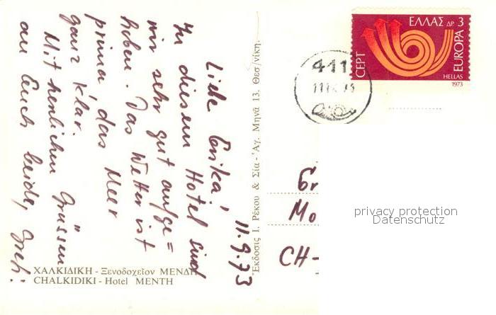 old postcard Chalkidiki Halkidiki Hotel Menth Strand postalisch gelaufen Erhaltung siehe scans [FriedD77]