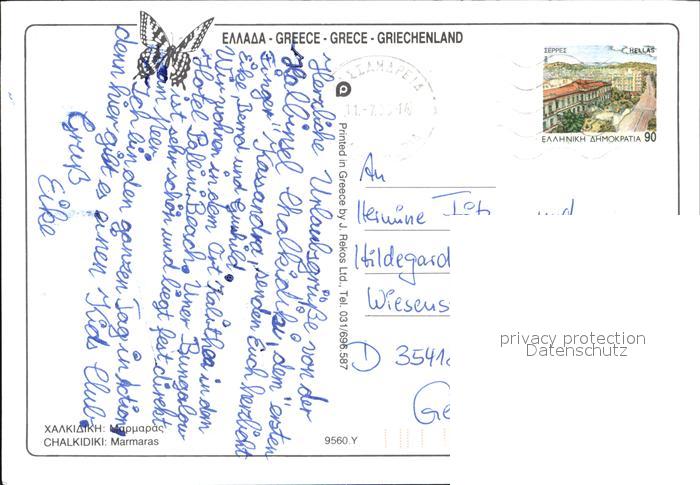 old postcard Chalkidiki Halkidiki Marmaras postalisch gelaufen Erhaltung siehe scans [WerneD78 kv017box]