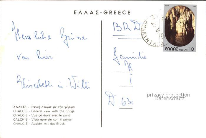 old postcard Chalkis Chalkida Stadtbild mit Bruecke postalisch gelaufen Erhaltung siehe scans