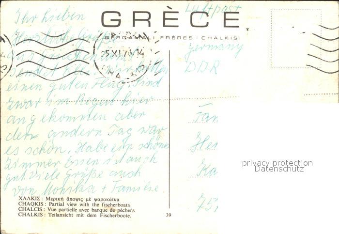 old postcard Chalkis Fischerboote postalisch gelaufen Erhaltung siehe scans