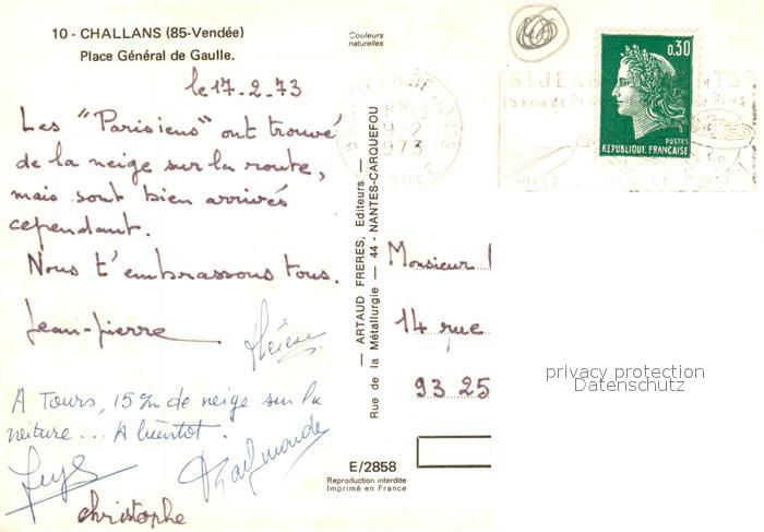 13273630 carte postale Challans Place General de Gaulle postalisch gelaufen Erhaltung siehe scans [NatalD47] KatCode: 11170085385047