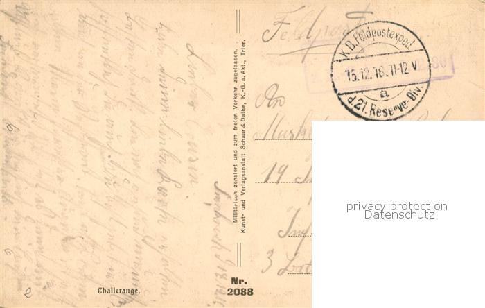 13366159 carte postale Challerange Ortsmotiv Truemmer 1. Weltkrieg postalisch gelaufen Feldpostexpedition (Stempel) Erhaltung siehe scans [FriedD77] KatCode: 11170008408097