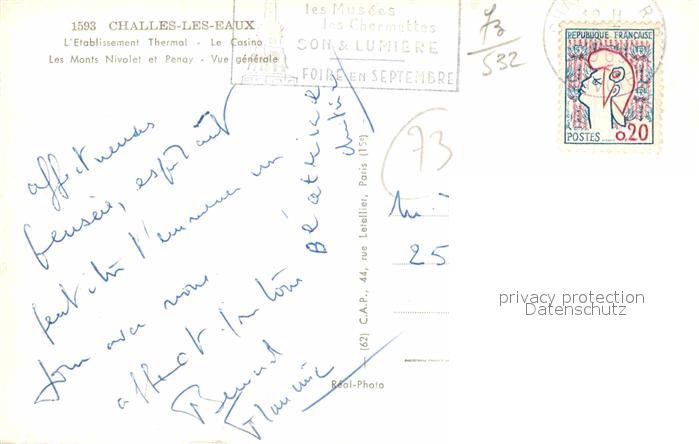 12754319 carte postale Challes-les-Eaux Etablissement Thermal Casino Les Monts Nivolet et Penay postalisch gelaufen Erhaltung siehe scans [FriedD77] KatCode: 11170073273064