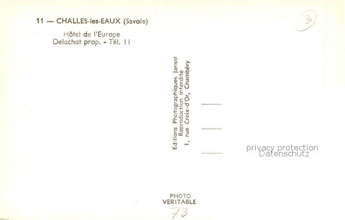 13486840 Challes-les-Eaux Hotel de l’Europe postalisch nicht gelaufen Erhaltung siehe scans [FriedD77] KatCode: 11170073273064