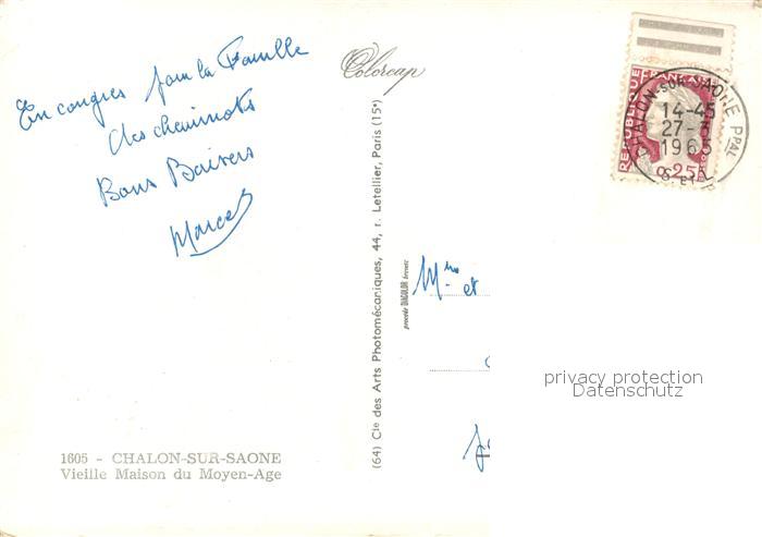 13581215 carte postale Chalon-sur-Saone Vieille maison du Moyen Age postalisch gelaufen Erhaltung siehe scans [FriedD77] KatCode: 11170071271076