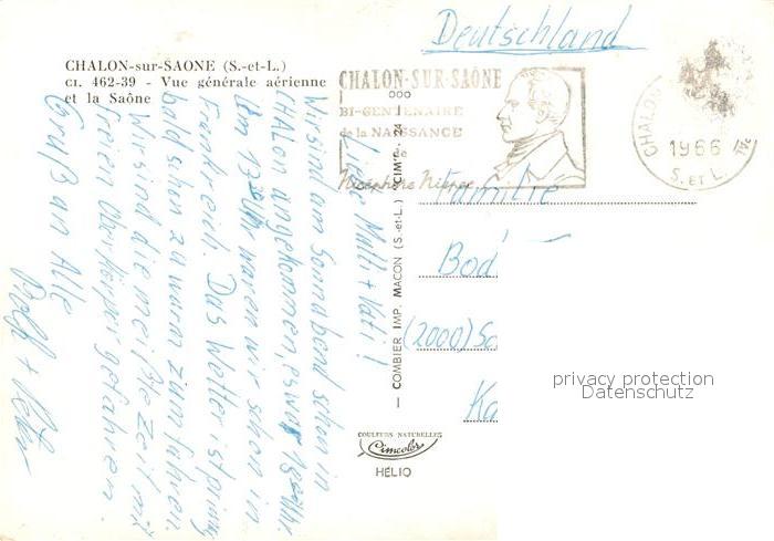 13090212 carte postale Chalon-sur-Saone Vue Aerienne Saone postalisch gelaufen Erhaltung siehe scans [PaolaD17] KatCode: 11170071271076