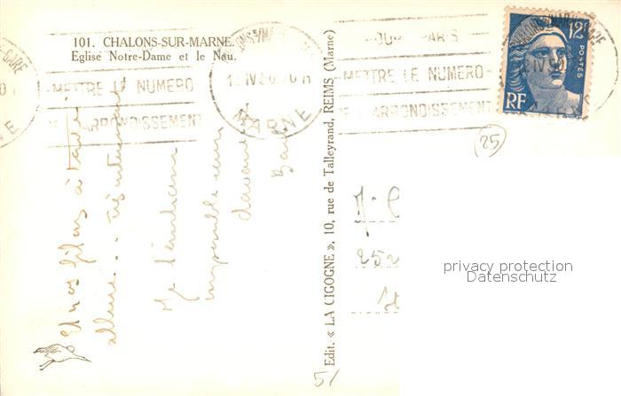 13506424 carte postale Chalons-en-Champagne Marne Eglise Notre Dame et le Nau postalisch gelaufen Erhaltung siehe scans [FriedD77] KatCode: 11170051151108