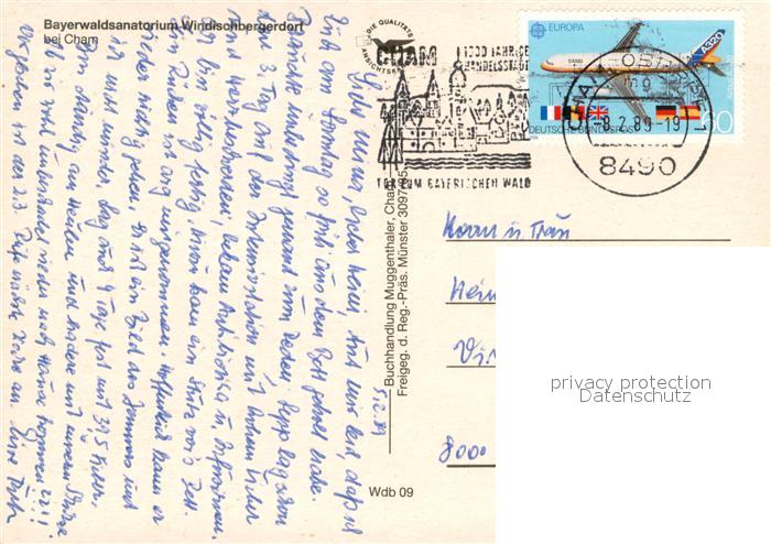 73745103 alte Postkarte Cham Oberpfalz Bayerwaldsanatorium Windischbergerdorf Fliegeraufnahme postalisch gelaufen Erhaltung siehe scans [WerneD78] KatCode: 11110009372116