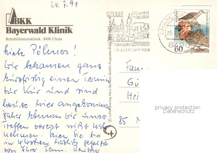 73159747 alte Postkarte Cham Oberpfalz BKK Bayerwald Klinik Fliegeraufnahme postalisch gelaufen Erhaltung siehe scans [FriedD77] KatCode: 11110009372116