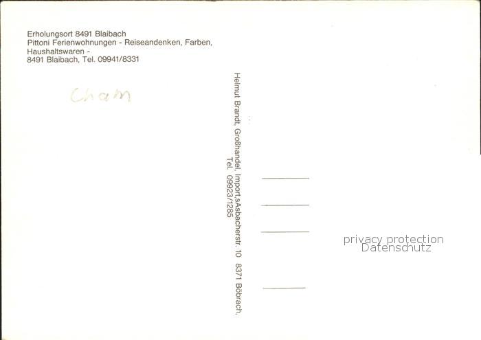 72226974 Cham Oberpfalz Blaibach Pittoni Ferienwohnungen- Reiseandenken postalisch nicht gelaufen Erhaltung siehe scans KatCode: 11110009372116
