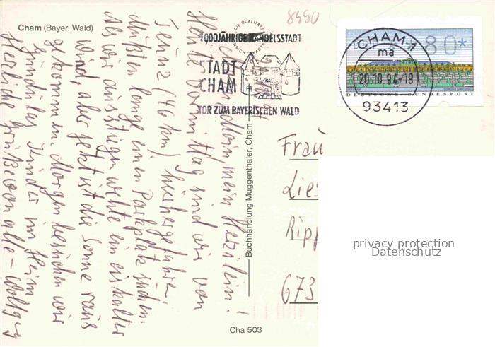 74049664 alte Postkarte Cham Oberpfalz Fliegeraufnahme postalisch gelaufen Erhaltung siehe scans [FriedD77] KatCode: 11110009372116