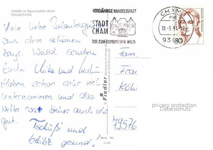 72859244 alte Postkarte Cham Oberpfalz Klosterkirche postalisch gelaufen Erhaltung siehe scans [WerneD78] KatCode: 11110009372116