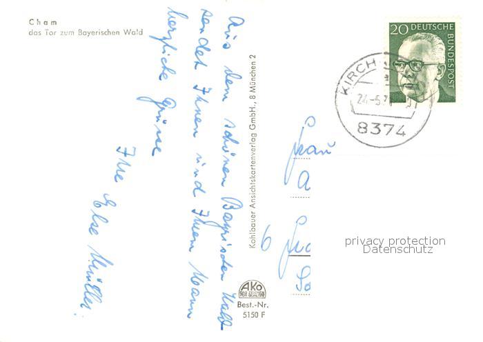 73095941 alte Postkarte Cham Oberpfalz Schloss Kirche Bruecke Panorama postalisch gelaufen Erhaltung siehe scans [KathaD81] KatCode: 11110009372116