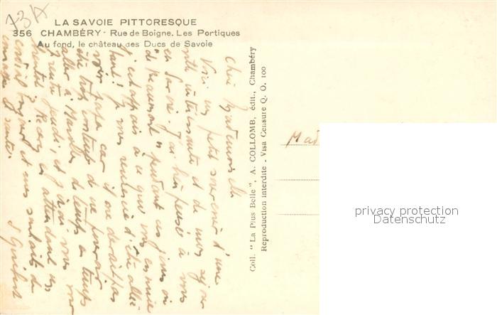 13746730 Chambery 73 Rue de Boigne Portiques Chateau des Ducs de Savoie postalisch nicht gelaufen Erhaltung siehe scans [FriedD77] Frie Katcode 11170073273065