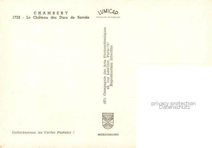 13599000 Chambery Savoie Chateau des Ducs de Savoie postalisch nicht gelaufen Erhaltung siehe scans [FriedD77] Frie Katcode 11170073273065