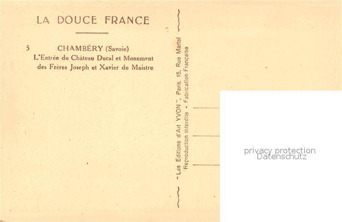 13360062 Chambery Savoie Chateau Ducal et Monument ders Freres Joseph et Xavier de Maistre postalisch nicht gelaufen Erhaltung siehe scans [LiesaD40] KatCode: 11170073273065