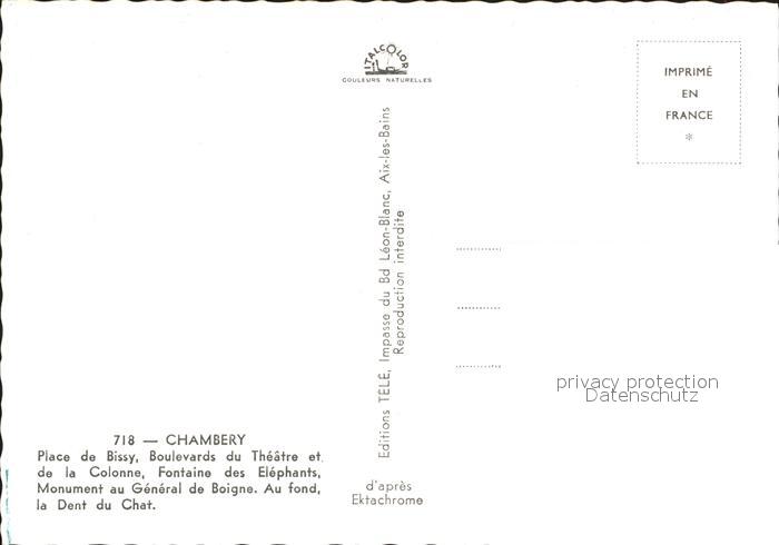 12347425 Chambery Savoie Place de Bissy Boulevards Theatre Colonne Fontaine des Elephants postalisch nicht gelaufen Erhaltung siehe scans KatCode: 11170073273065