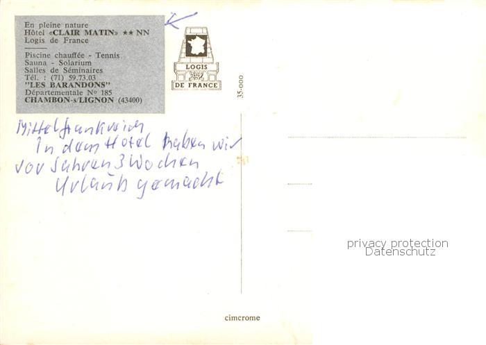 13841315 Chambon-sur-Lignon Le Hotel Clair Matin Vue aerienne postalisch nicht gelaufen Erhaltung siehe scans [WerneD78] Wern Katcode 11170043343051