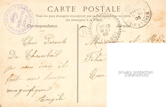 13519706 carte postale Chambord Blois Chateau postalisch gelaufen Erhaltung siehe scans [LiesaD40] KatCode: 11170041141034