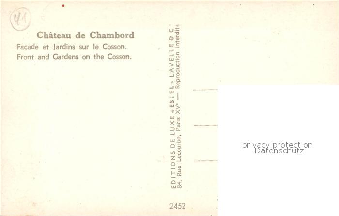 13546729 Chambord Blois Chateau Facade et jardins sur le Cosson Schloss postalisch nicht gelaufen Erhaltung siehe scans [FriedD77] KatCode: 11170041141034